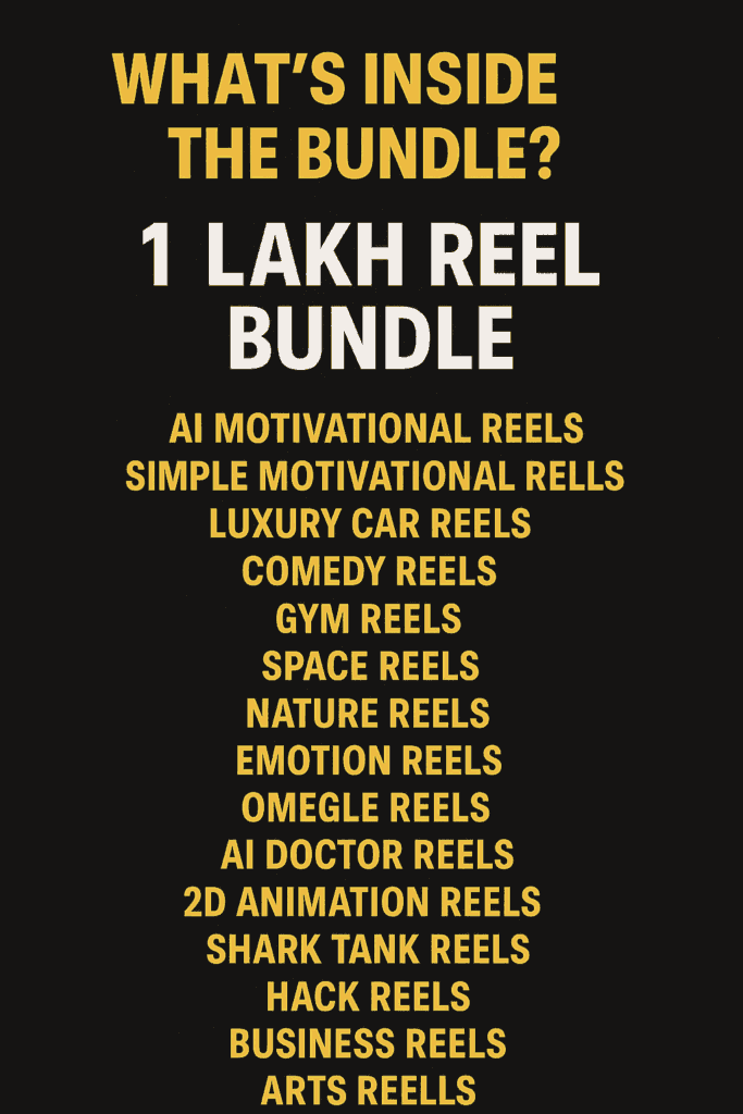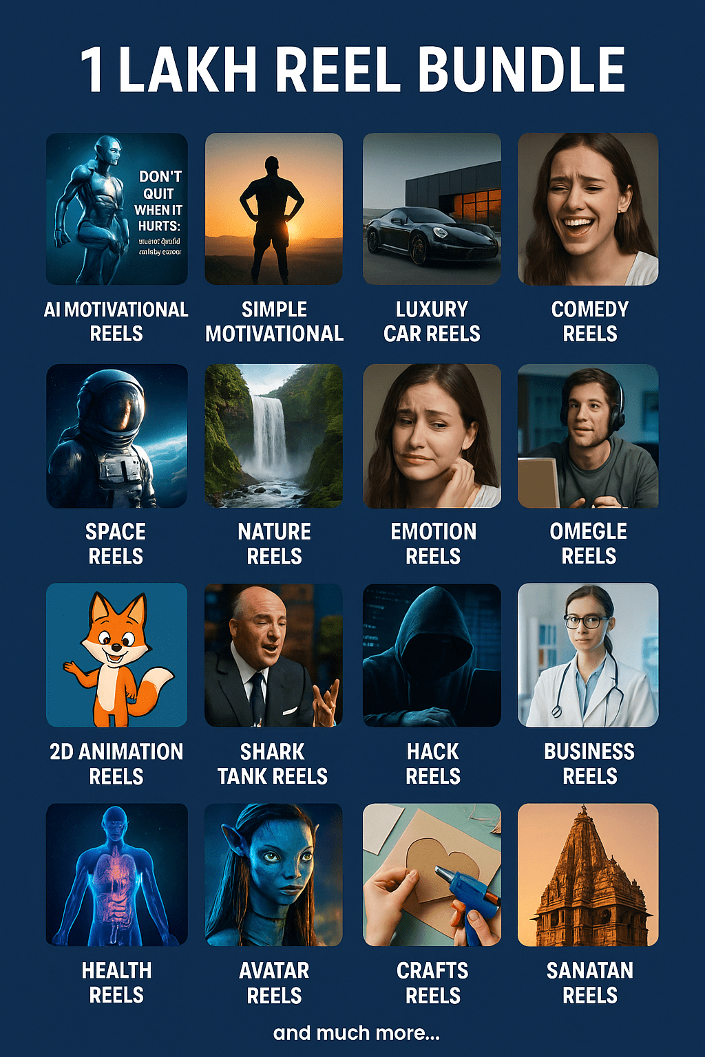 With our 1 Lakh Reels Bundle, you can start uploading high-quality, ready-to-use videos on YouTube Shorts, Facebook Reels, and Instagram Reels—and begin earning instantly.